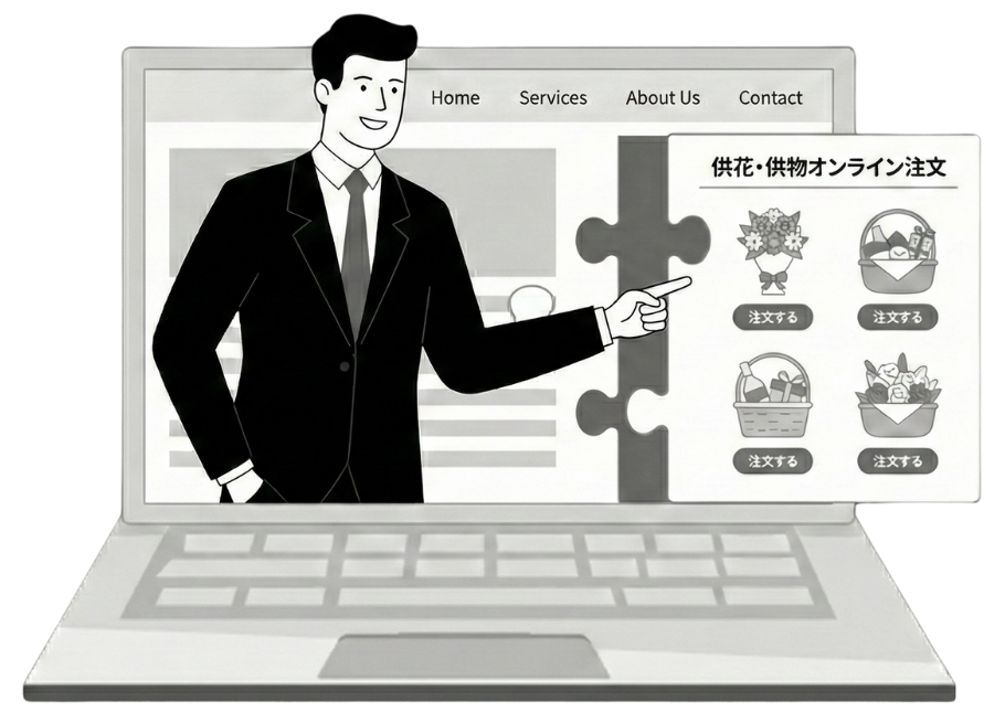 供花・供物の受注を、スマートフォンから簡単に。