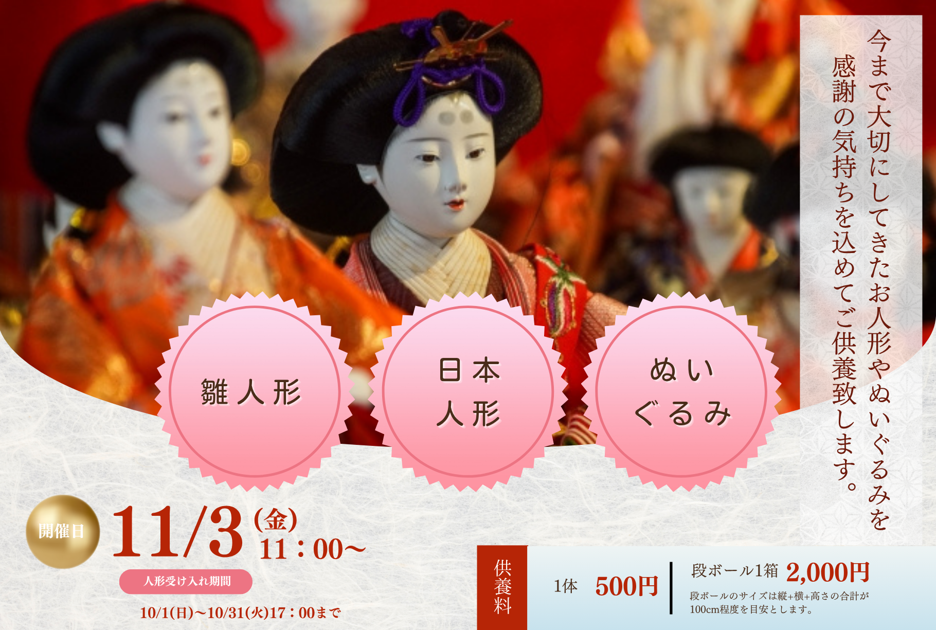 ・イベント(人形供養祭、お彼岸フェアなど)の告知