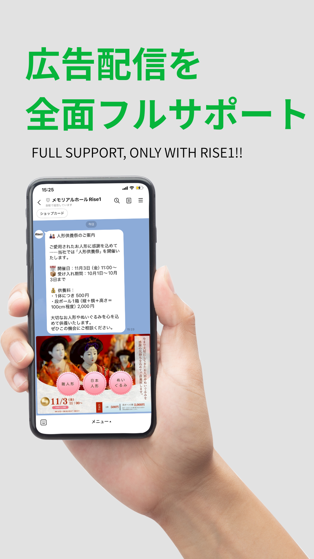 ・「人形供養祭は毎年9月開催」を年に1回配信